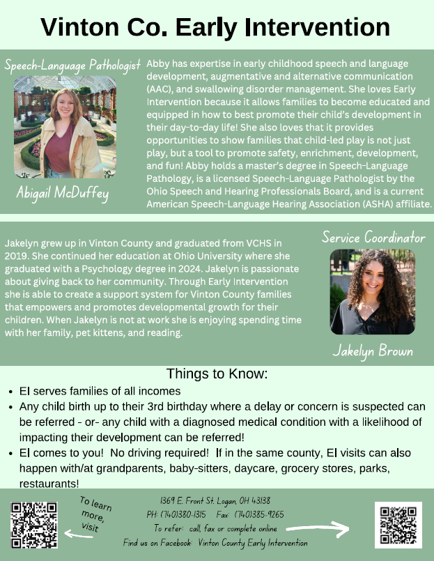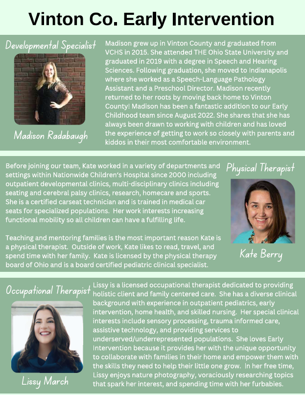 Funding for Early Intervention is supported by both the Hocking and Vinton County Boards of DD.